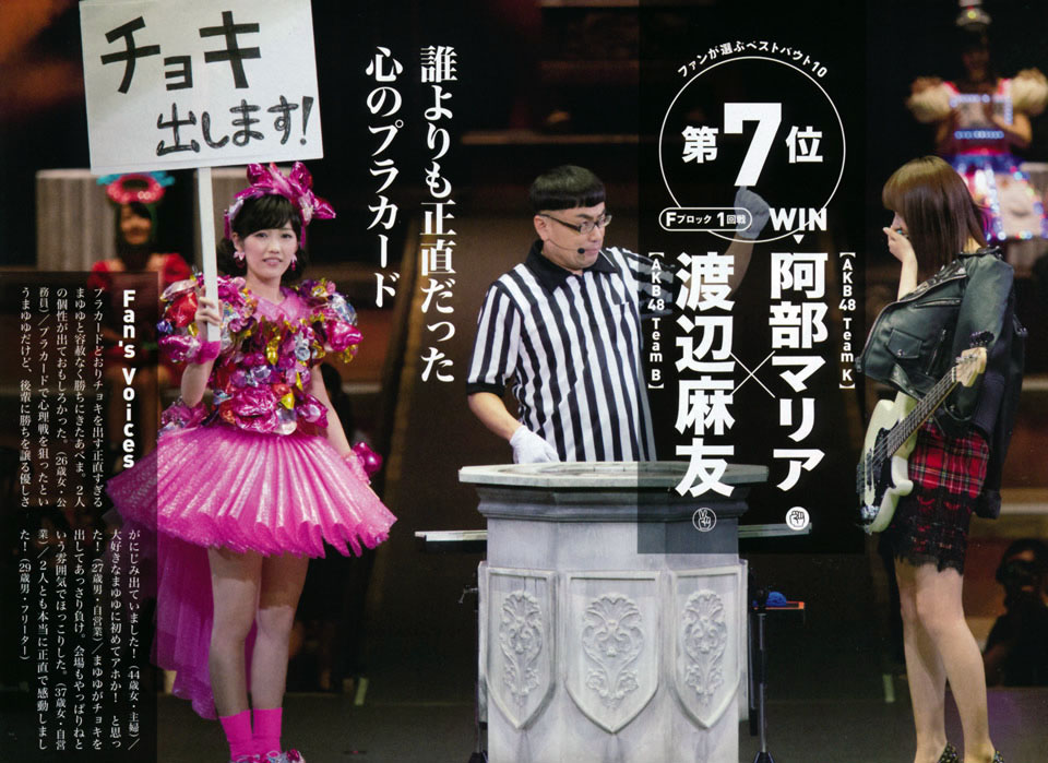 Best moments of AKB48 Janken 2014 OK CONSPIRACY ASIDE TOP 2014 JANKEN TAIKAI MOMENTS [for me]: Reinyan the ni-oshi doing Kimi no Hohoemi because duh. Aamin's Kiki cosplay Aamin getting caught trying The anticipated single will be released on 26th November 2014. the best of the Janken was Kojizaka46 during the recent AKB48 5th Janken 2014. And that was the 1st time Nasstun Oshima Yuko’s 10 best and most memorable moments as an AKB48 member AKB48 5th Janken Taikai Magazine "FLASH" SP has a special for AKB48 Janken Tournament 2014, and record the best moments of Janken Tournament final.