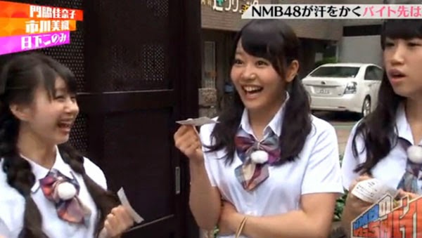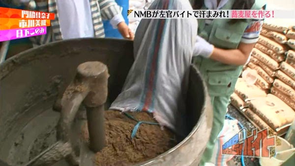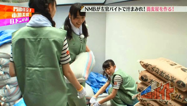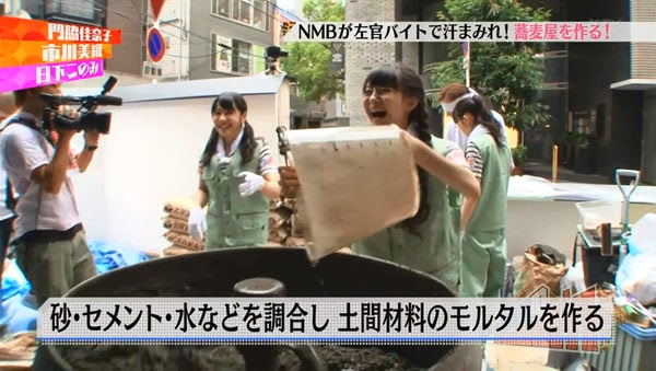 In the 2nd episode, NMB48 members Kadowaki Kanako, Kusaka Konomi and Ichikawa Miori did a part-time jobs as cement workers.